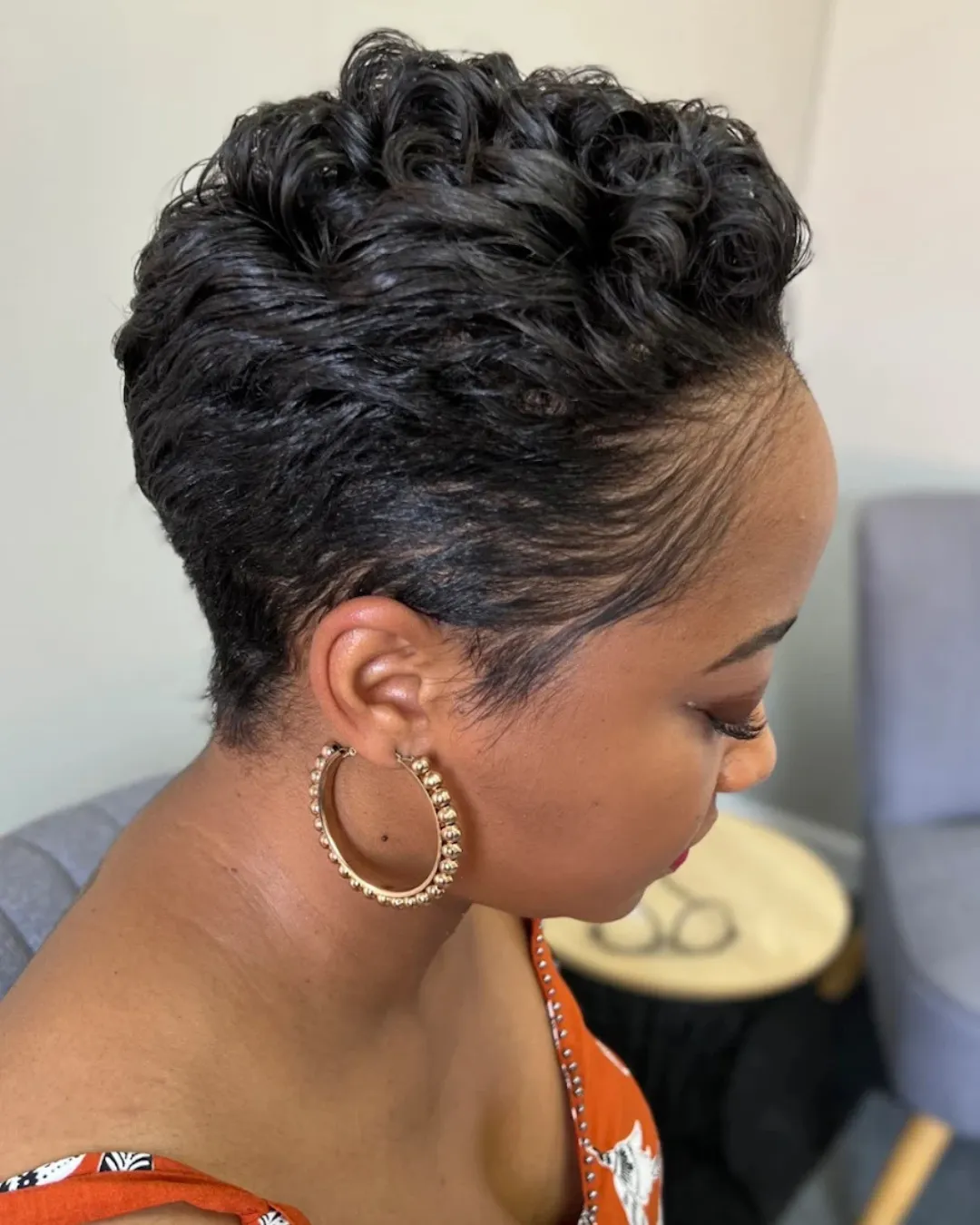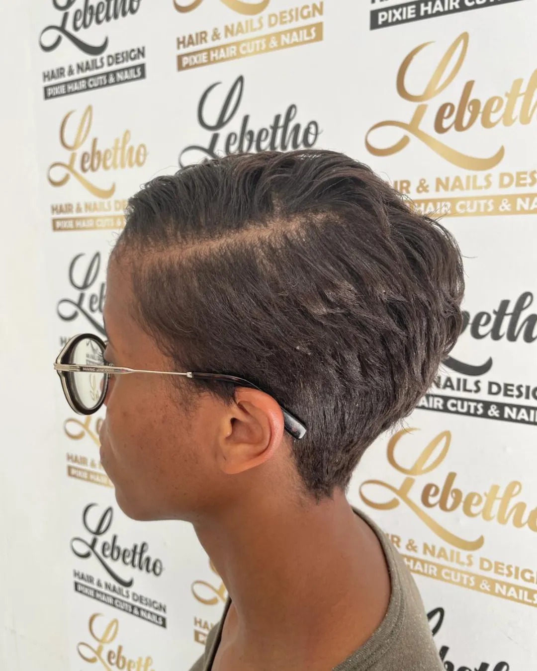 A chic ladies cut, as worn by former Isithembiso actress Lungelo Nxele, embodies effortless sophistication and modern elegance. This refined style enhances her natural beauty, with clean lines and precise tailoring that frame her features to perfection. The ladies cut is a celebration of minimalist luxury—bold yet understated, timeless yet contemporary. Crafted with meticulous attention to detail, it offers a polished, high-fashion finish that speaks to confidence and individuality. Ideal for the modern woman who values both style and simplicity, this look redefines glamour with a lasting impact.